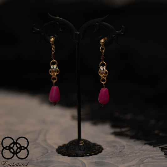 Cercei din zale și pietre semiprețioase - Boboci roz