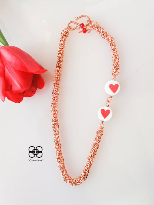 Colier din zale și mărgele din porțelan - Iubire