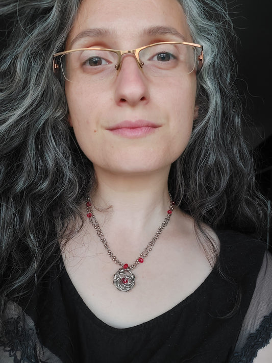 Colier din inox și cristale roșii - Rhaneyra