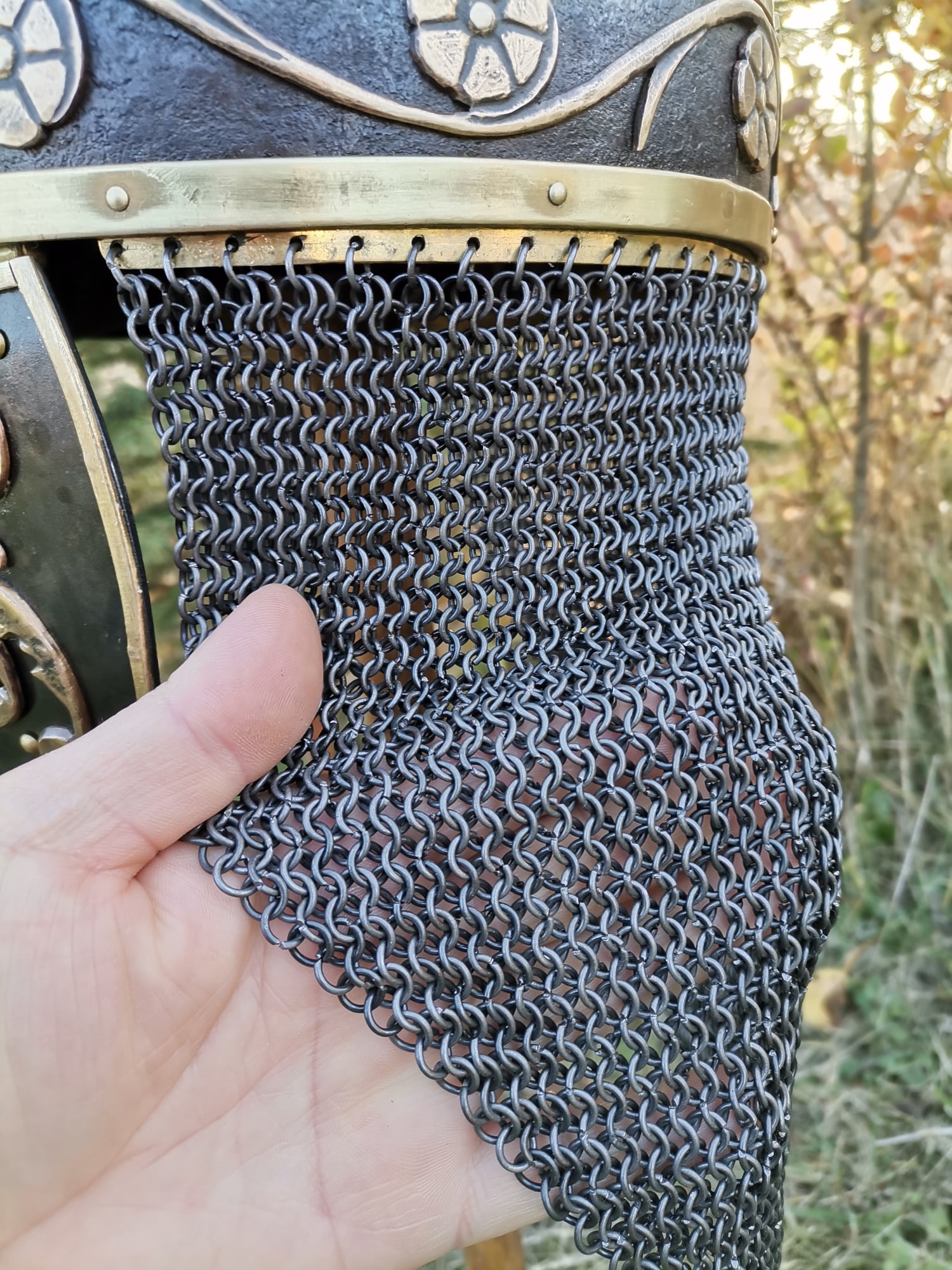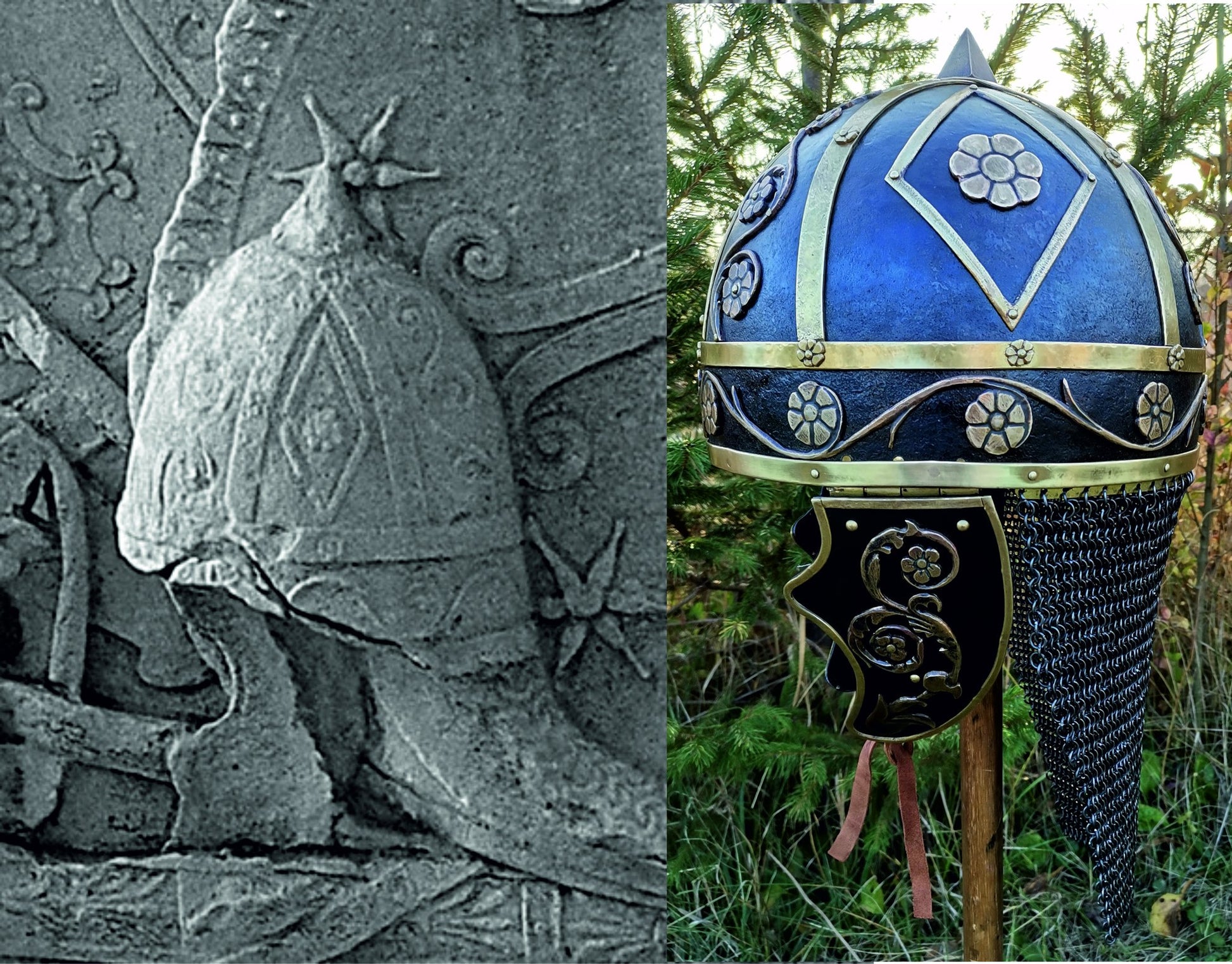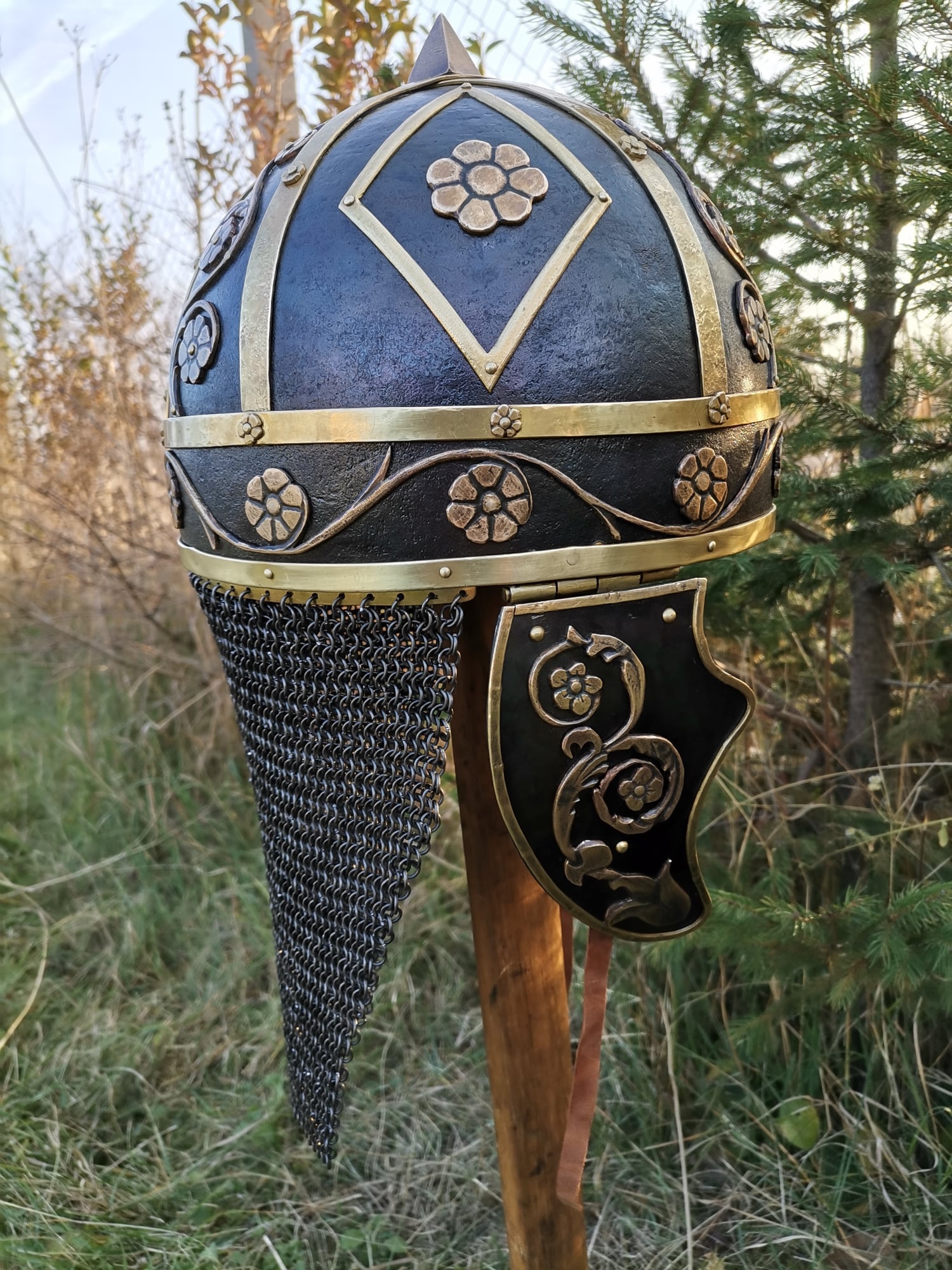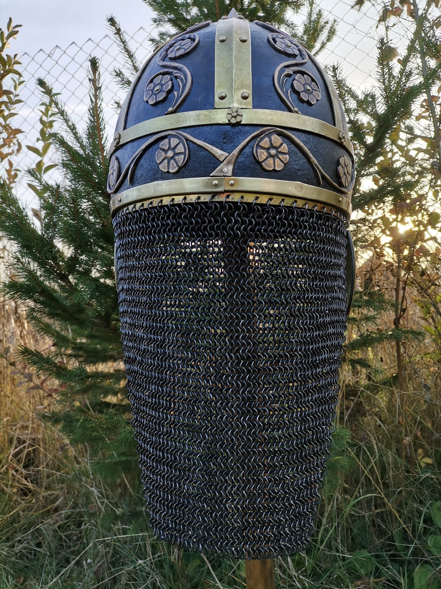 Modelul ales este bogat ornamentat, în cea mai mare parte cu motive florale. Am încercat să fiu cât mai apropiat de original, doar în cazul obrăzarelor am ales un tip de decorațiune de la alt coif, obrăzarele lipsind la primul.